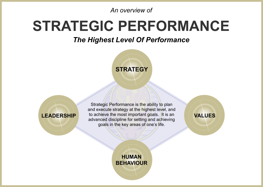 So what is strategic performance? Firstly, it is the ability to plan and execute strategy at the highest level, and to achieve the most important goals. Put another way, strategic performance is an advanced discipline for setting and achieving goals in the key areas of one’s life.
