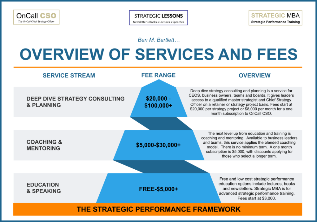 Listed below is a summary of the 2025 fee schedule for services available from Ben M. Bartlett, which are integrated into the Strategic Performance Framework.