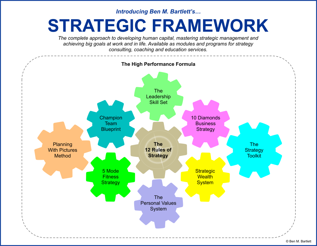 Listed below is a summary of the 2025 fee schedule for services available from Ben M. Bartlett, which are integrated into the Strategic Framework. That is, coaching, consulting and education is available for each of the modules listed here.