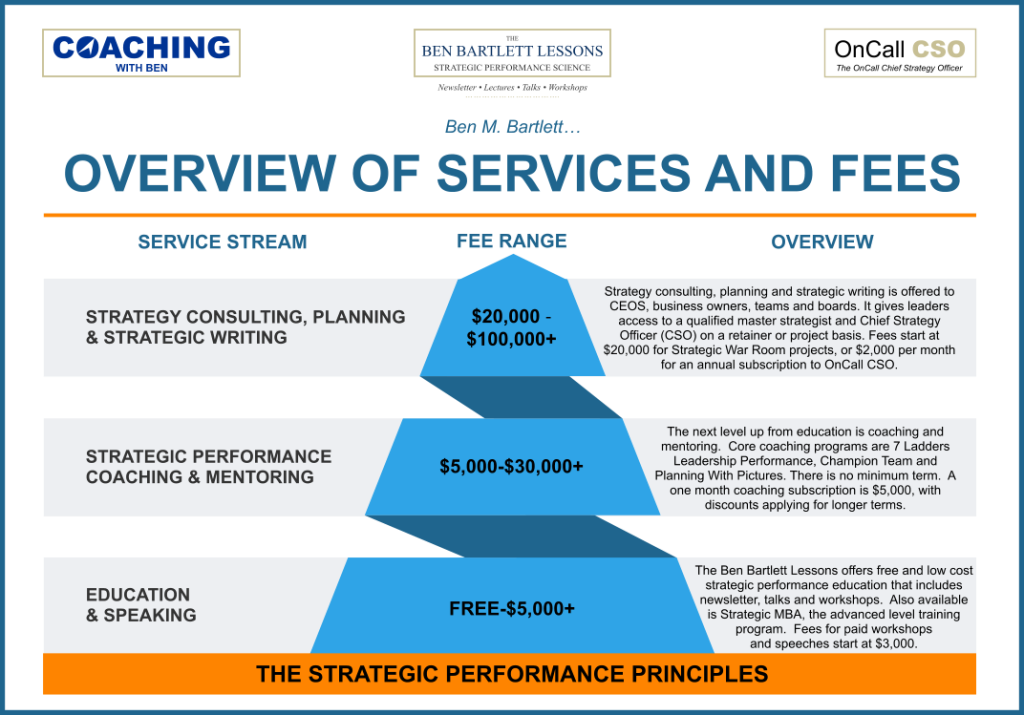 Listed below is a summary of the 2026 fee schedule for services available from Ben M. Bartlett, which are built upon the Strategic Performance Principles.